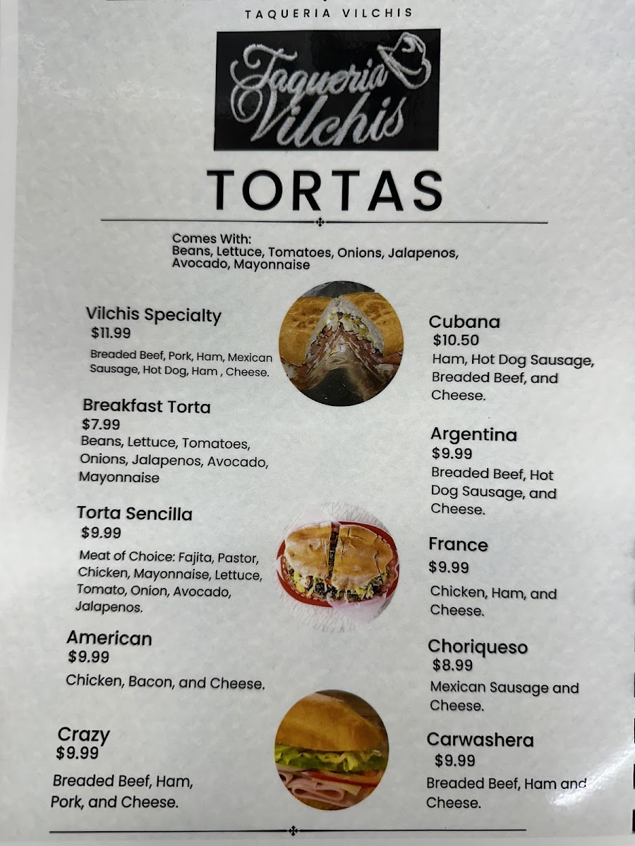 The Fajita Torta features grilled fajita beef or chicken, combined with fresh toppings like guacamole, lettuce, and tomatoes, making it a hearty and satisfying option for anyone craving a delicious and savory meal. The Cubana Torta stands out with its generous layers of various meats, including pork, beef, and sausage, making it a true feast for meat lovers. Lastly, the Torta Vilchis Especial is a unique creation exclusive to the restaurant, offering a blend of flavorful fillings and special sauces that define the Taqueria Vilchis experience.